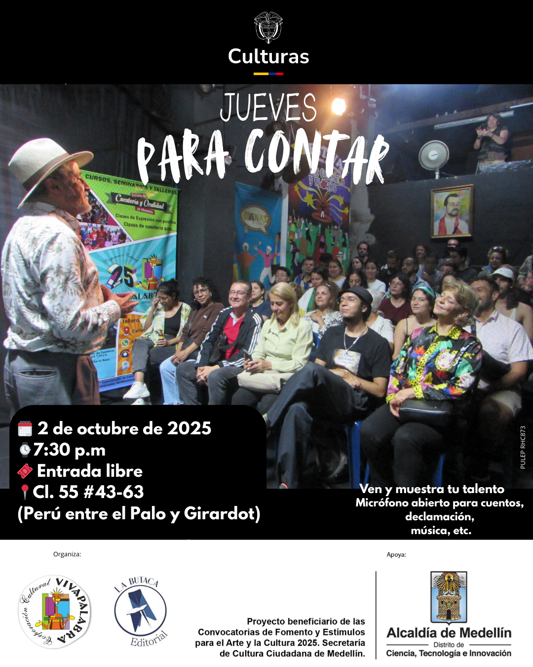 Si tienes un talento y quieres compartirlo con nosotros, este es el momento, o simplemente puedes venir a disfrutar de los cuenteros y artistas emergentes de la ciudad.
